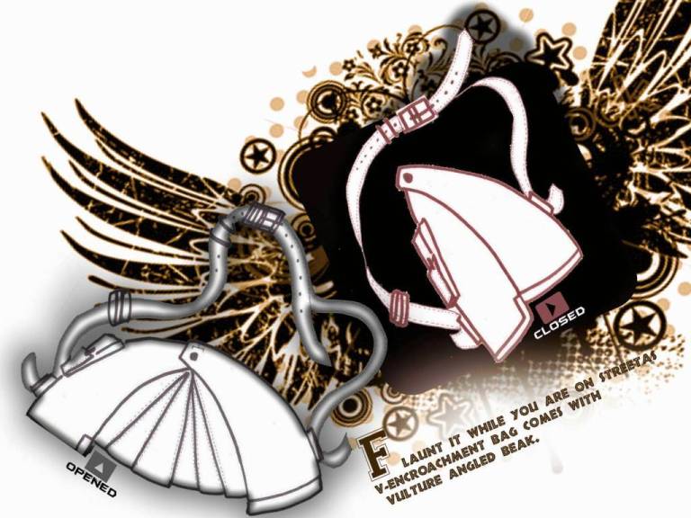 November 23, 2010 V- Encroachment bag (Vulture inspired) Share this: Click to share on WhatsApp (Opens in new window) WhatsApp TweetShare on Tumblr Click to email a link to a friend (Opens in new window) Email Click to share on Reddit (Opens in new window) Reddit Click to share on Telegram (Opens in new window) Telegram Like Loading... Related