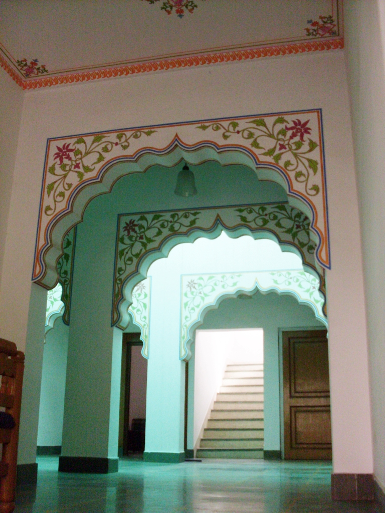 It was such a lovely peaceful place to stay! Beautiful peacocks on the wall in the morning among the flowers. I loved the artwork on the ceiling of my room and the arches and columns outside. Nice photos of it :).