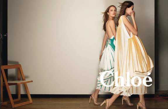 Chloé typo overlapping on the models makes it content effective as it allows the eyes to look the fashion figures and recall the brand name simultaneously. This campaign is a good mixture of typography, Object + Context understanding , precise Spring Summer orientation, color coordinated, acute layout and right posture of models.